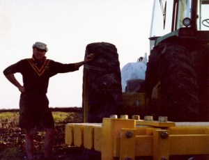 Another kind of ploughing is with a big V shaped grader in the empty ditches. You had to get a very good understanding of your tractor’s centre of gravity. This is because you drove at an angle up the mound at the edge of the ditch until one front wheel was up in the air and then you tipped over the edge into the ditch and one of your back wheels went up in the air until you got onto the side of the ditch itself. You were driving at very harsh angles and it was a little nerve racking. You then drove along the ditch with the grader pushing weeds and soil out of the ditch. At the far end of the ditch you then had to climb the tractor out. This was even more difficult than getting in. You always thought that you were going to go over backwards.